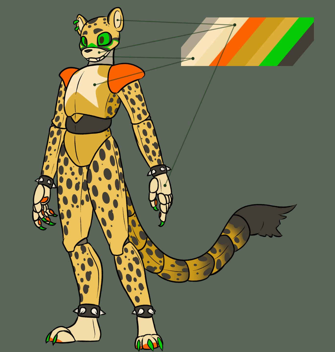 1 unshaded fullbody + 1 close-up + color palette (simple/gradient/pattern bg)